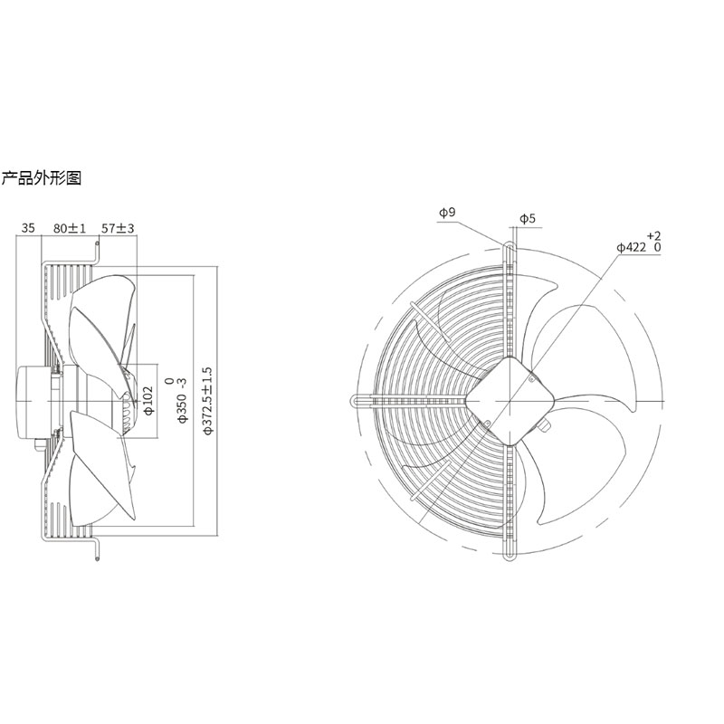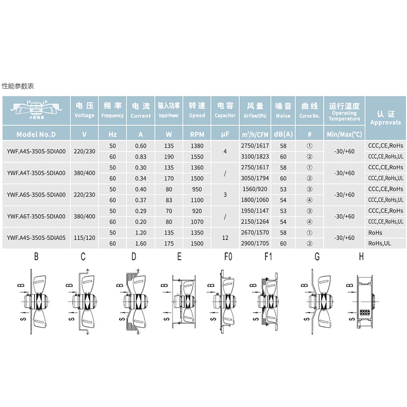 5. YWF.A4S-350S-7DIA01冷庫專用排風外轉子低噪聲網罩軸