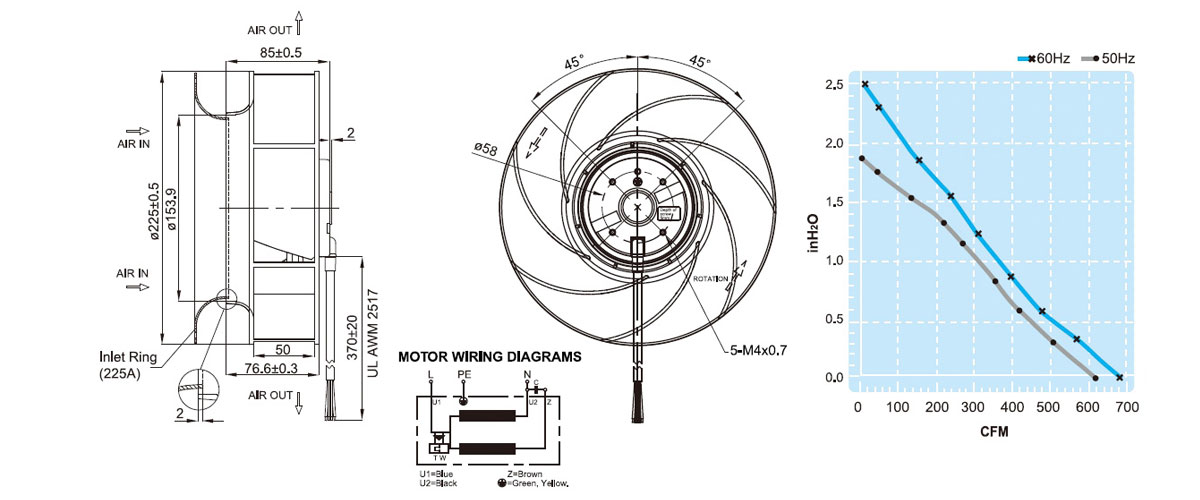 5. UF225(99)APA-F全新原裝臺灣進(jìn)口福佑離心風(fēng)機(jī)渦輪外轉(zhuǎn)子鼓風(fēng)機(jī)小型靜音離心風(fēng)扇