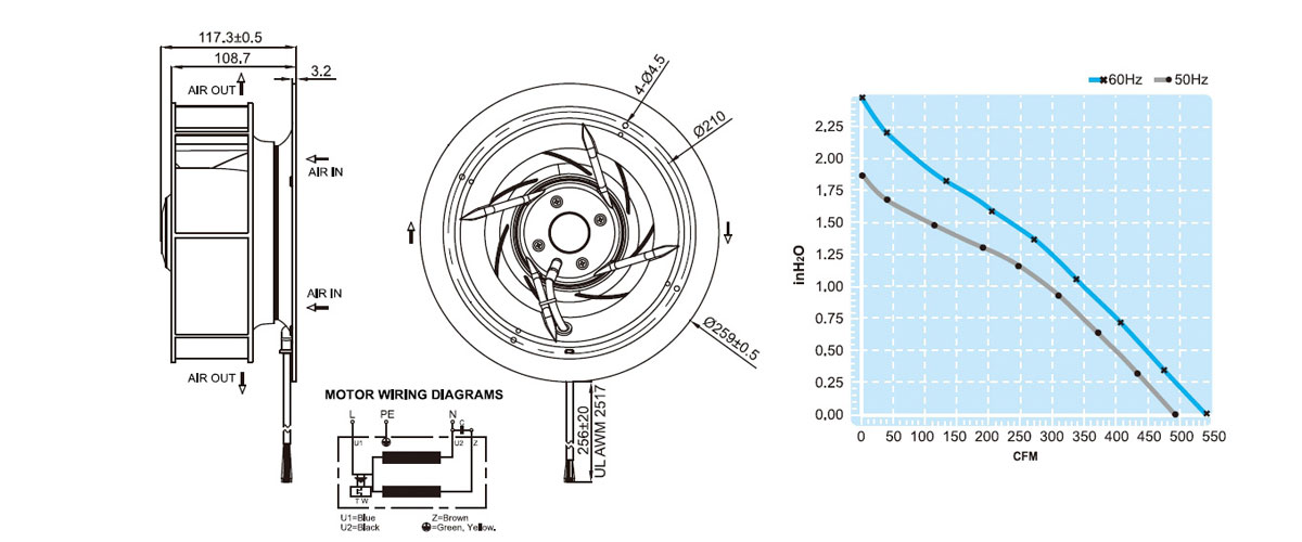 UF225(99)APA-F全新原裝臺灣進口福佑離心風機渦輪外轉子鼓風機小型靜音離心風扇
