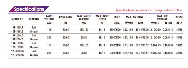 12P-115HB全系列臺灣百瑞Bi-Sonic軸流風扇