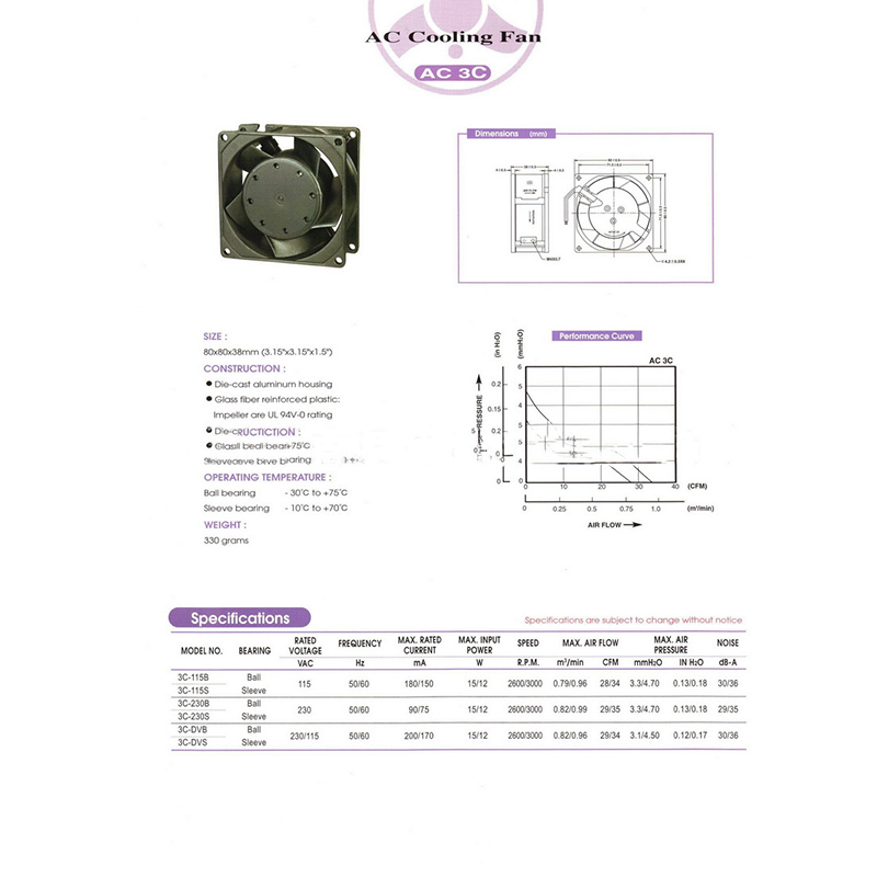 原裝臺灣Bi-Sonic百瑞3C-230HB軸流雙滾珠軸承機械設備軸流風扇