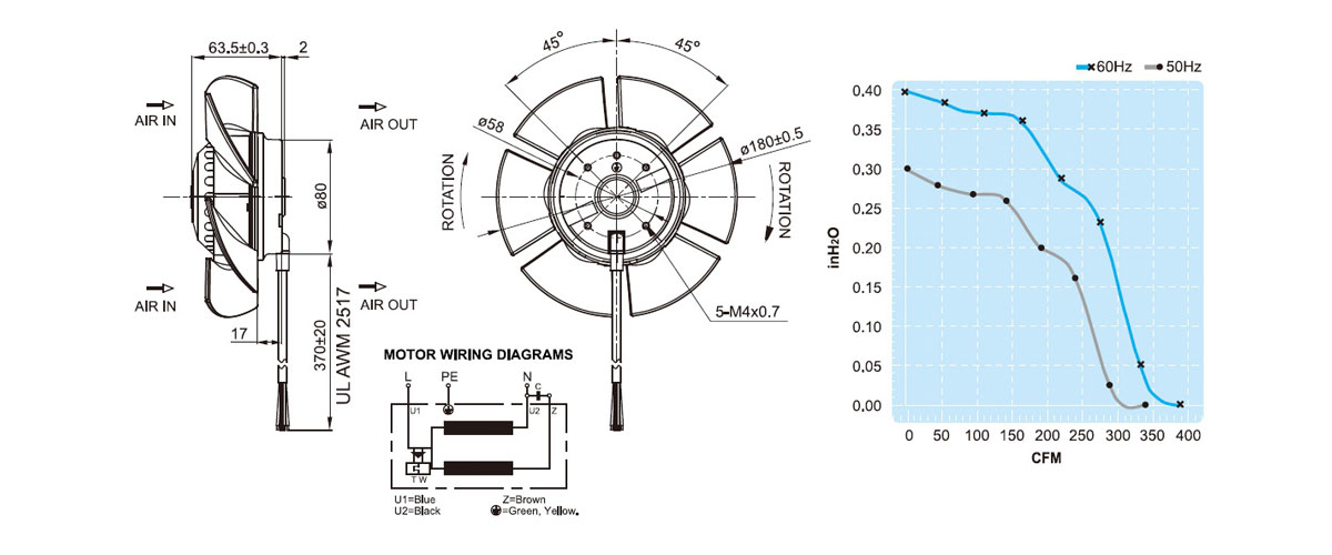 全新原裝臺灣福佑180mm無框外轉子電機主軸承散熱風機115V 230V